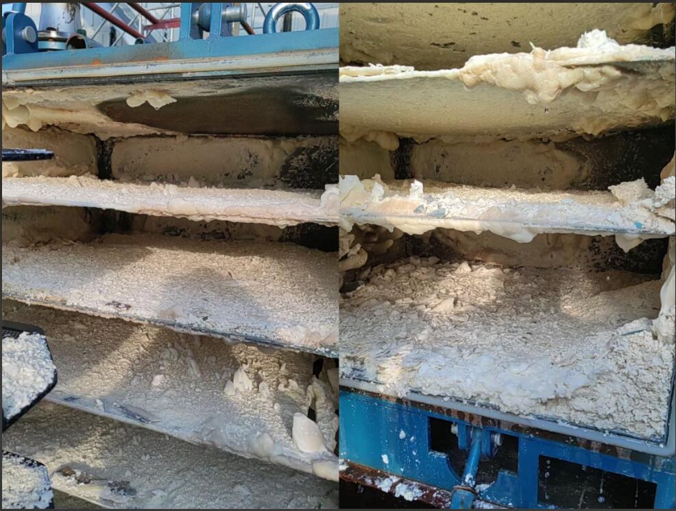 經了解瑞陽化工循環水系統采用自來水作為補水,循環水排水受限,經過多輪深入地技術交流與研討,瑞陽化工選擇欣格瑞公司的SGR系統電化學設備。設備內置由特殊材料制作的陰陽極板,通電后電解水使陰極具備除垢;陽極具備殺菌、滅藻功能,能較好的解決循環水的結垢、腐蝕、菌藻等問題,實現循環水的高濃縮倍數或者近零排運行,是一種顛覆性的循環水處理技術。目前,該項目設備已順利安裝并運行,運行效果顯著。設備內部吸附沉積了大量水垢,大幅降低了循環水中成垢離子濃度,增強了循環水系統的穩定性與可靠性,實現了無藥劑添加下的高濃縮倍數安全運行,減少了一次水的消耗和污水排放,為瑞陽化工的生產運營提供了堅實的保障。